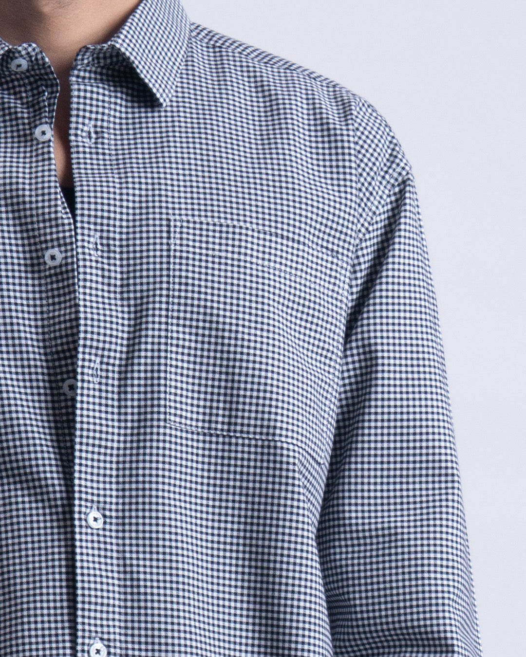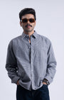 Relaxed fit shirt in a comfortable cotton fine fabric featuring long sleeves, buttoned cuffs, patched pocket and spread collar.