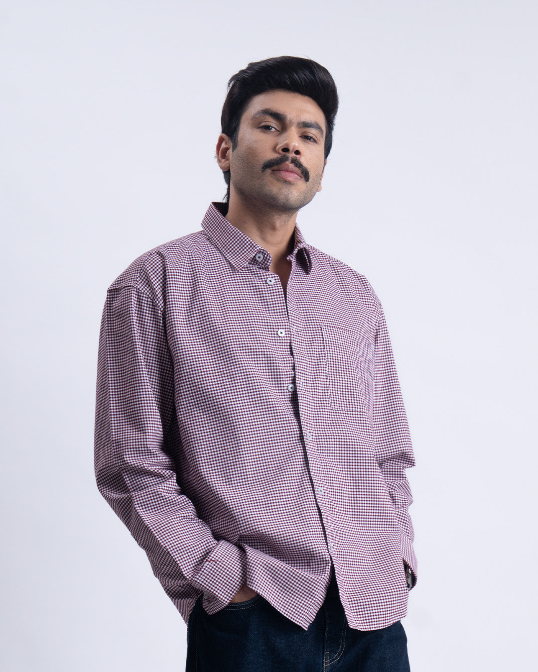 Checkered Relaxed Shirt In Wine