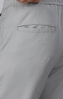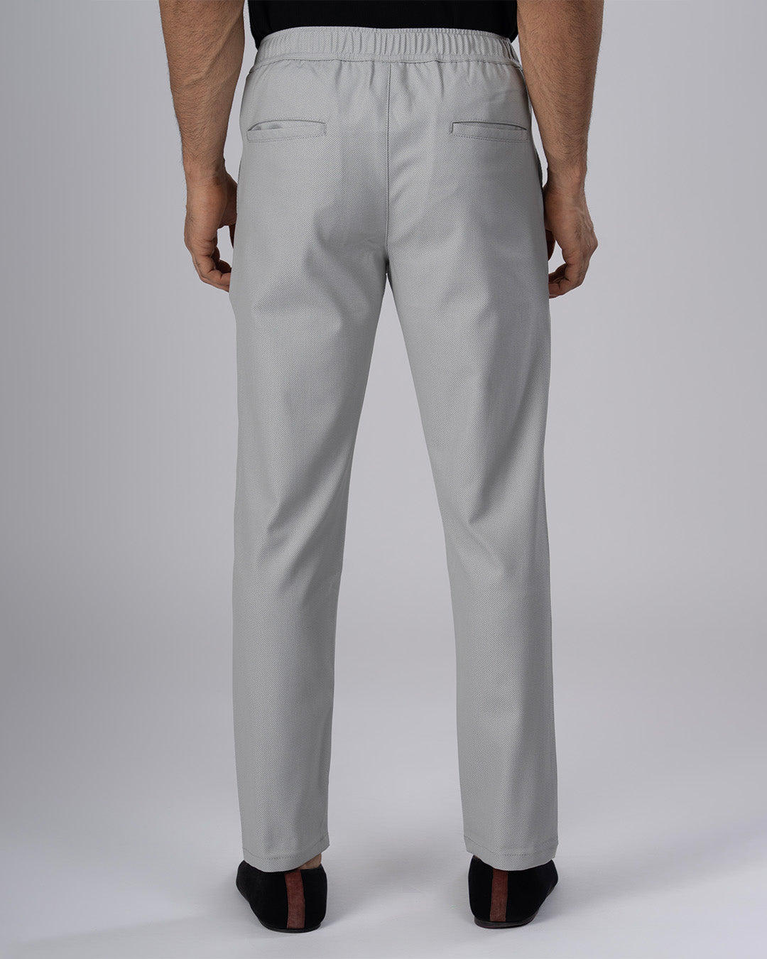 Tailored fit trousers in a comfortable high stretch medium weight polyester-viscose blend wrinkle-resistant fabric with a classic elasticated waistband featuring front pockets, jetted back pockets, concealed drawstrings and button closure.