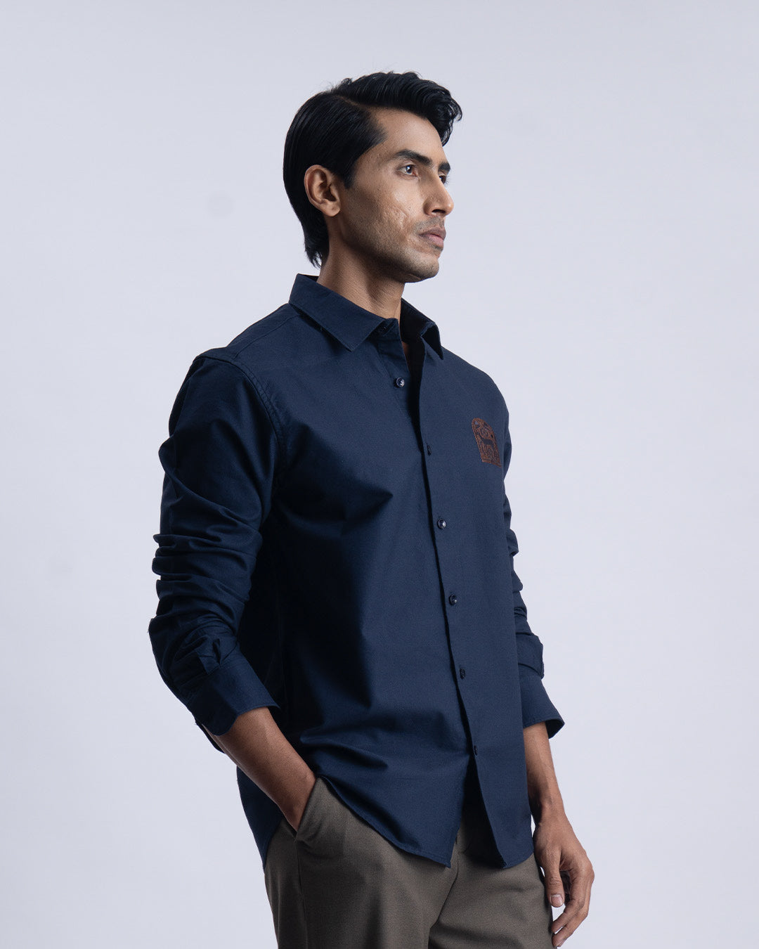 Tailored fit embroidered shirt in a comfortable cotton fabric featuring long sleeves, buttoned cuffs and spread collar.