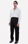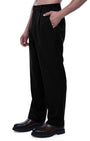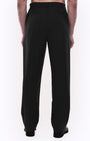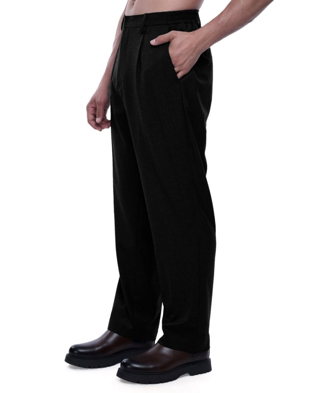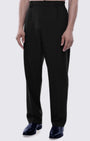 Relaxed fit trousers in a comfortable high stretch and light medium weight polyester-viscose blend wrinkle resistant fabric with a classic semi-elasticated waistband featuring front pockets, jetted back pockets, zip fly and hook closure.