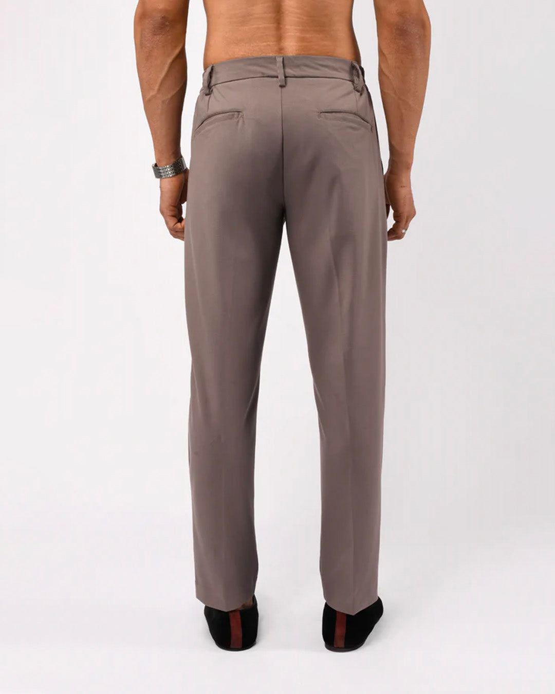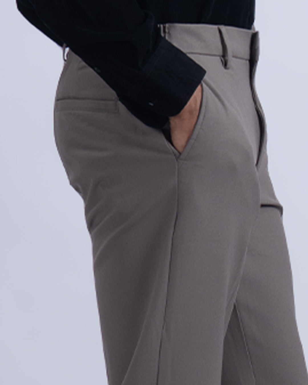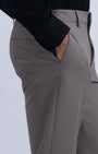 Tailored fit trousers in a comfortable high stretch and light medium weight polyester-viscose blend wrinkle resistant fabric with a classic semi-elasticated waistband featuring front pockets, jetted back pockets, zip fly and hook closure.