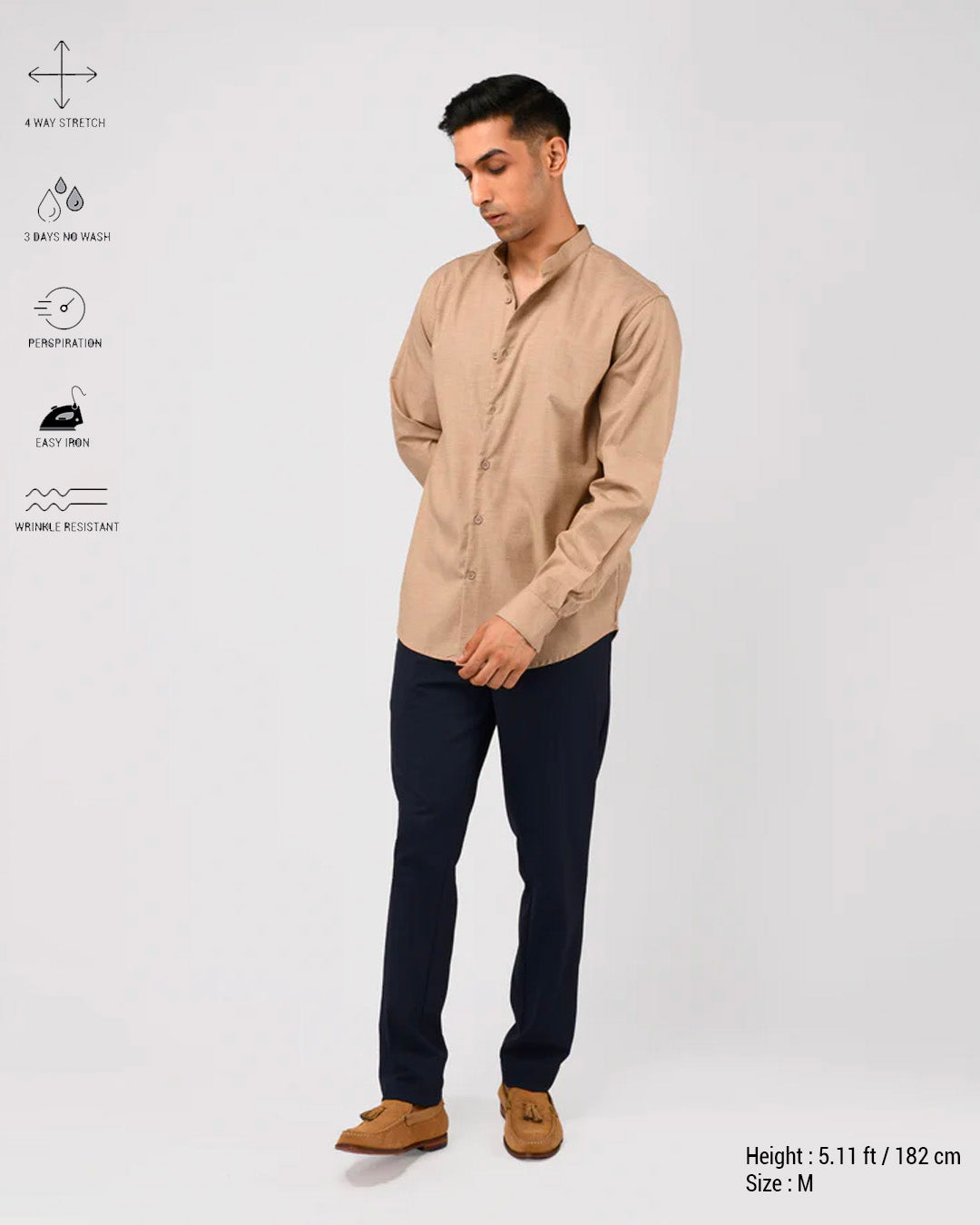 Tailored fit trousers in a comfortable high stretch and light medium weight polyester-viscose blend wrinkle resistant fabric with a classic semi-elasticated waistband featuring front pockets, jetted back pockets, zip fly and hook closure.