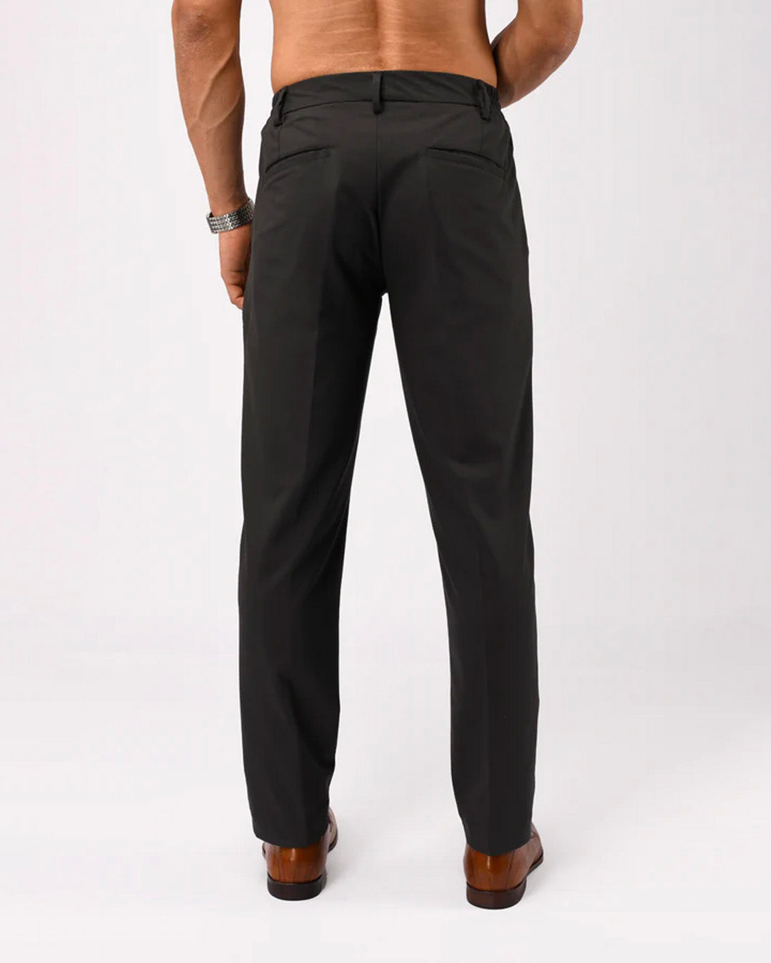 Tailored fit trousers in a comfortable high stretch and light medium weight polyester-viscose blend wrinkle resistant fabric with a classic semi-elasticated waistband featuring front pockets, jetted back pockets, zip fly and hook closure.
