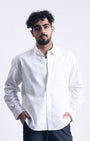 Linen Fused Relaxed Cropped Shirt In White