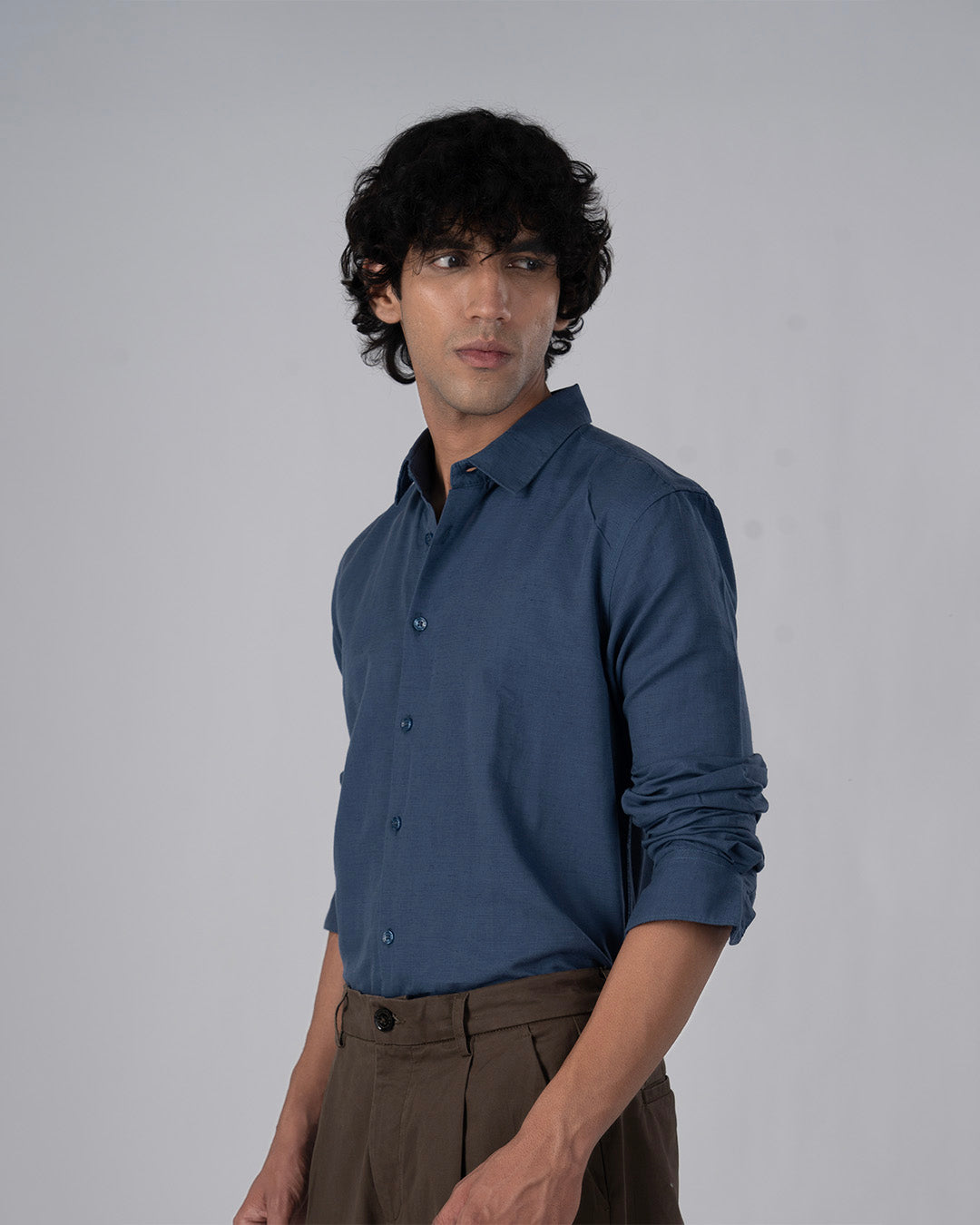 Tailored fit shirt in a comfortable fine cotton linen blend fabric featuring long sleeves, buttoned cuffs and spread collar.