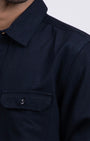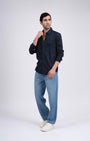 Tailored fit shirt in a comfortable high stretch polyester viscose fabric featuring long sleeves, buttoned cuffs, front flap pockets and spread collar.