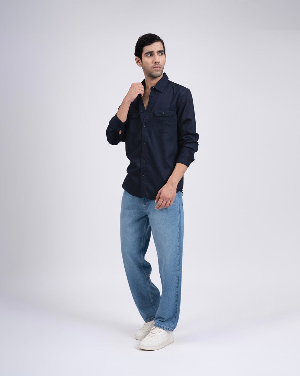 Easy Iron Cord Cargo Shirt In Navy