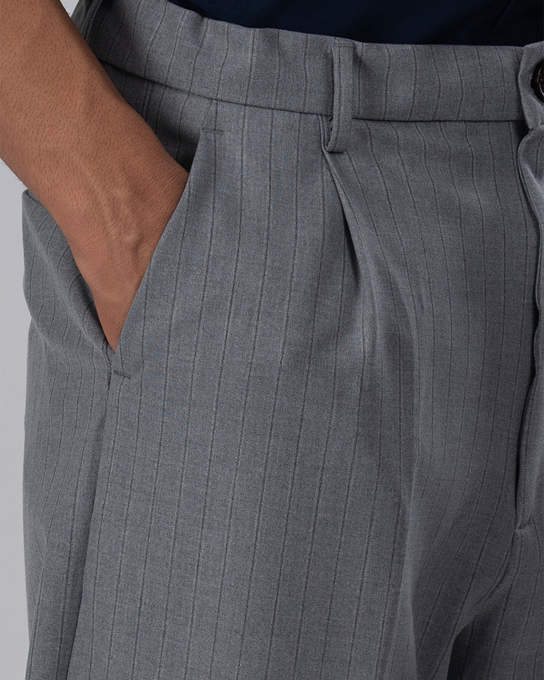 Easy Iron Striped Relaxed Trousers In Light Grey