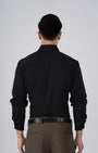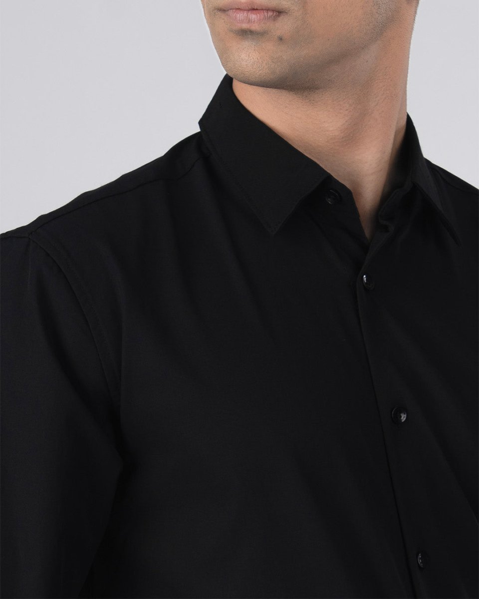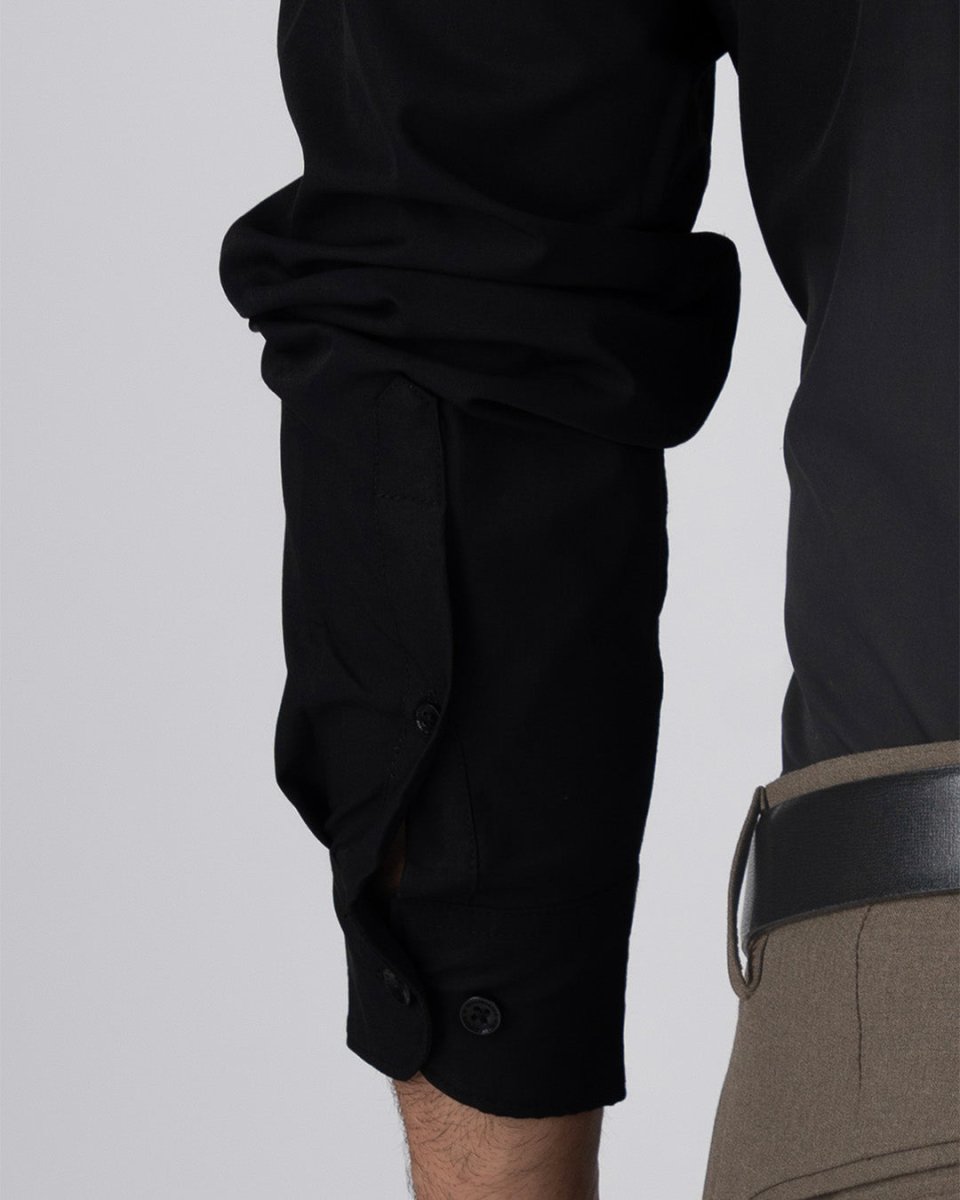 Tailored fit shirt in a comfortable light-weight soft polyester fabric featuring long sleeves, buttoned cuffs, and spread collar