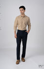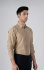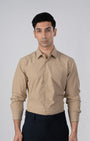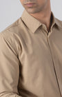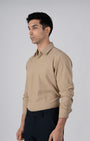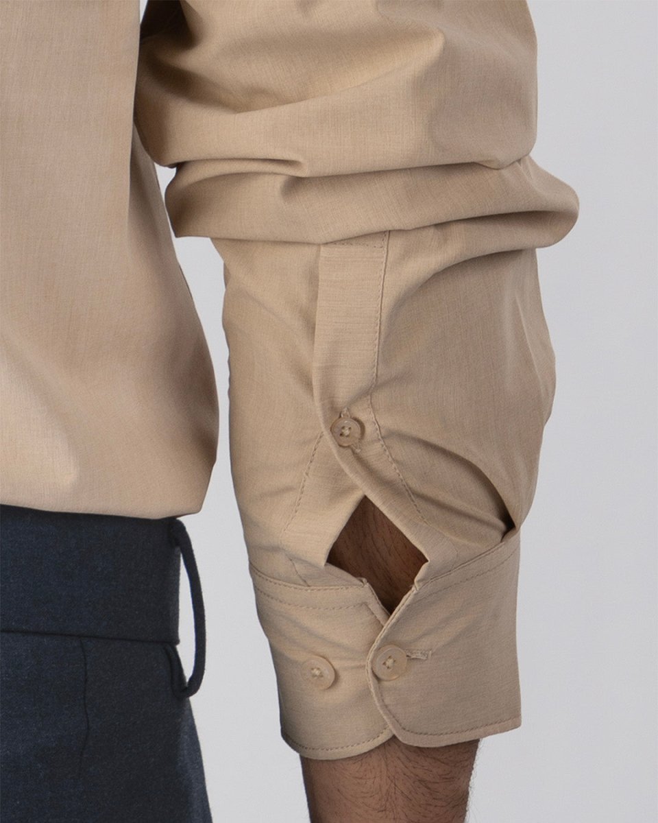 Tailored fit shirt in a comfortable light-weight soft polyester fabric featuring long sleeves, buttoned cuffs, and spread collar