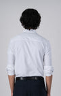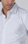 Tailored fit shirt in a comfortable light-weight soft polyester fabric featuring long sleeves, buttoned cuffs, and spread collar