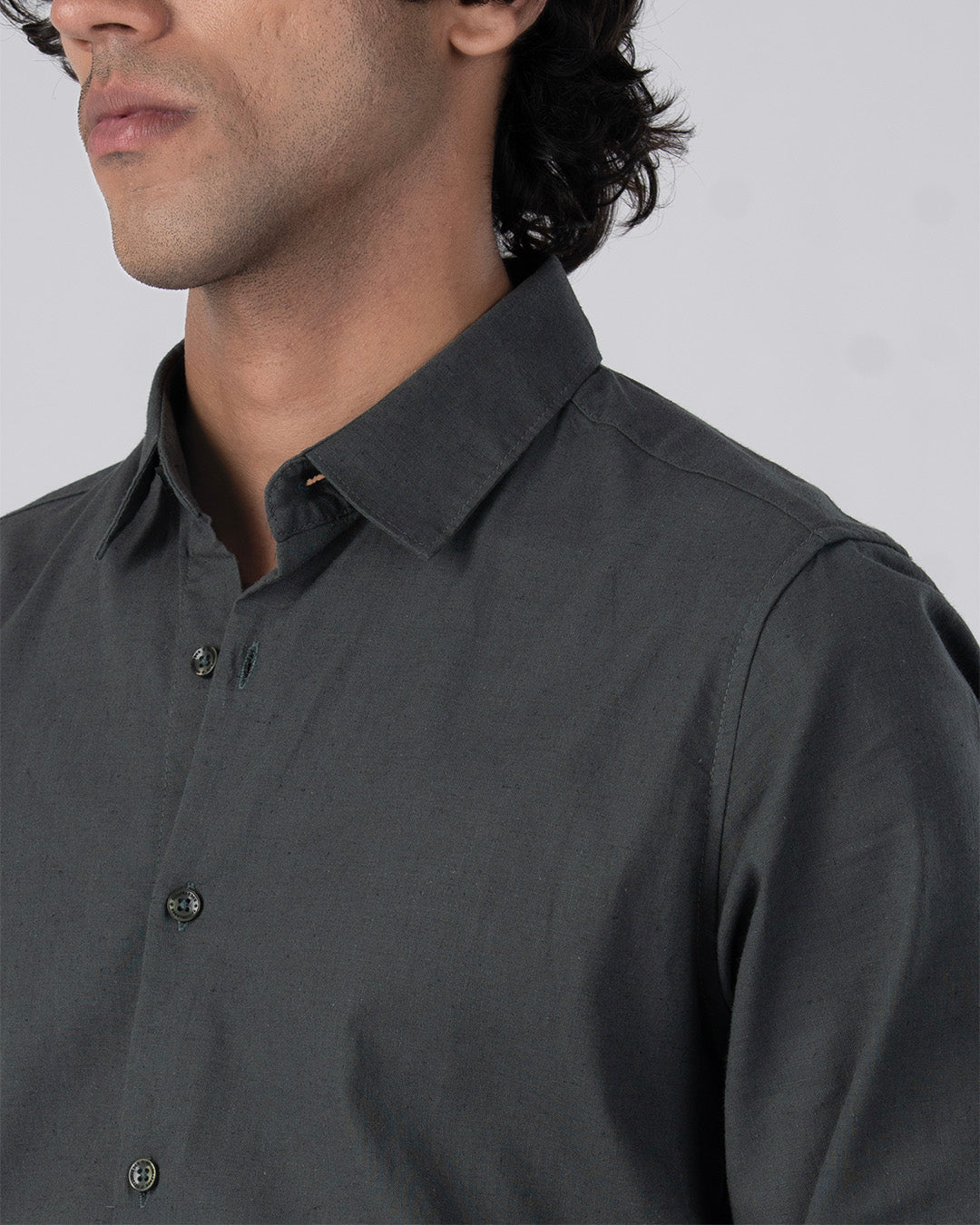 Tailored fit shirt in a comfortable cotton linen fabric featuring long sleeves, buttoned cuffs and spread collar.