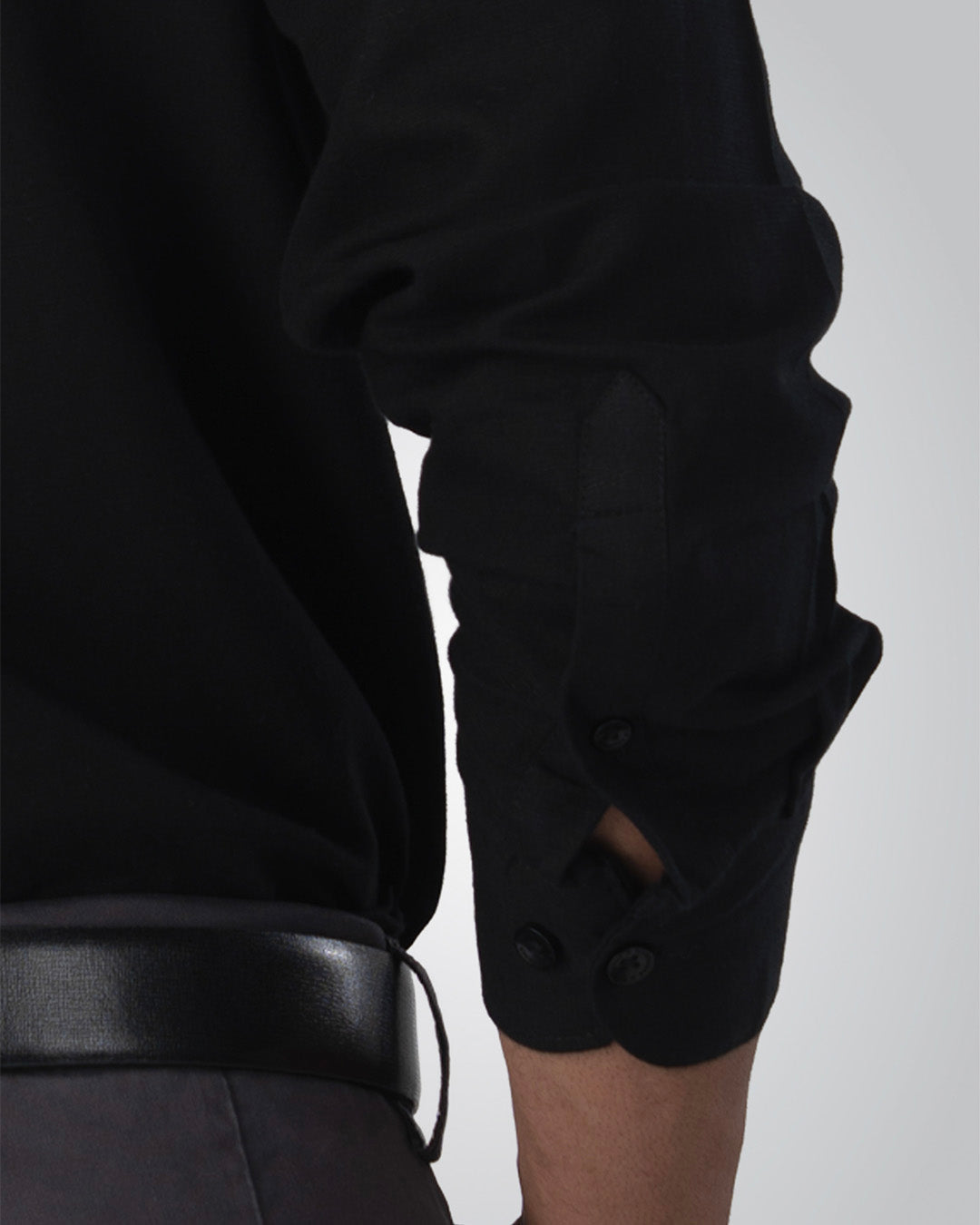 Premium Linen Griege Shirt In Black