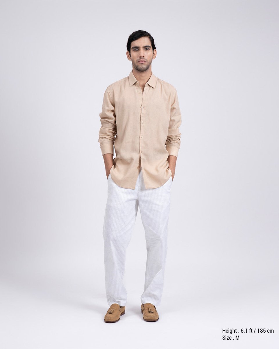 Tailored fit shirt in a comfortable lyocell linen blend fabric featuring long sleeves, buttoned cuffs and spread collar.