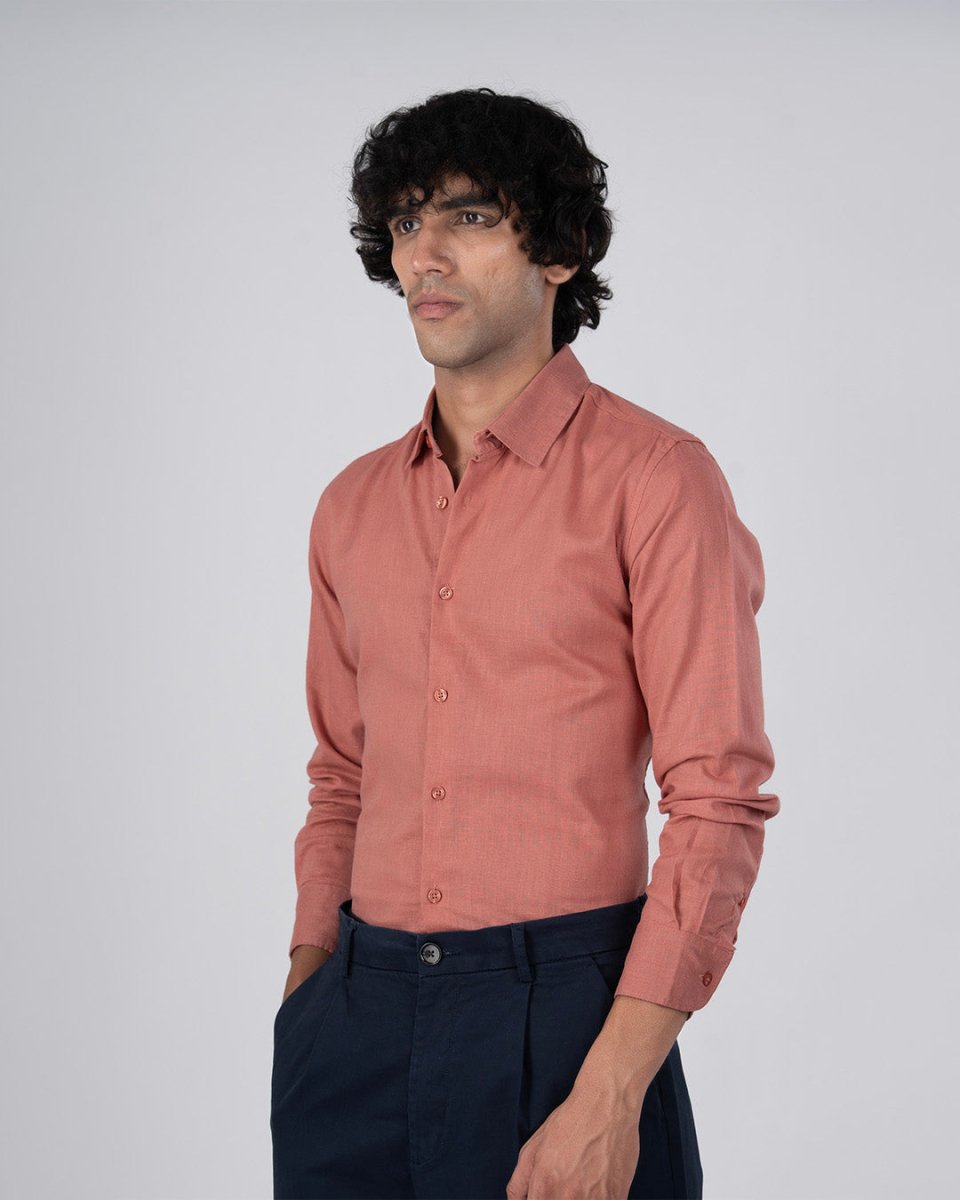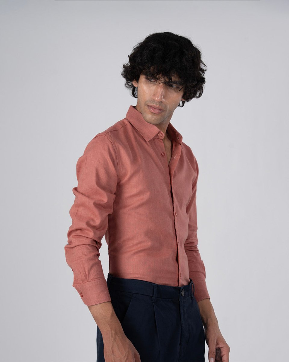 Tailored fit shirt in a comfortable lyocell linen blend fabric featuring long sleeves, buttoned cuffs and spread collar.