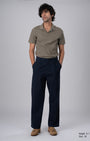 Relaxed fit pleated trousers in a comfortable high stretch and light medium weight cotton fabric with a classic waistband featuring front pockets, jetted back pockets, zip fly and button closure.