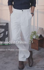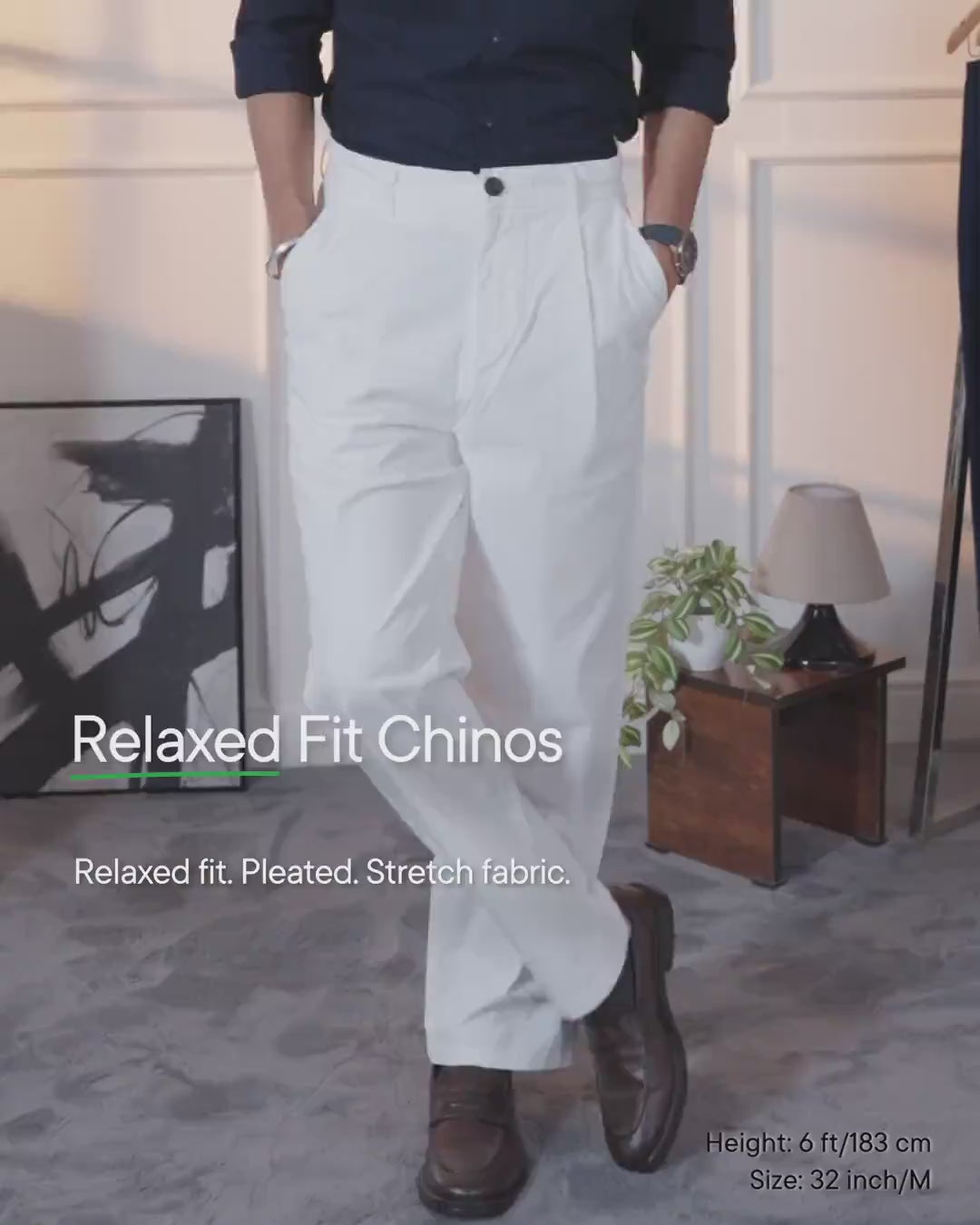 Relaxed fit pleated trousers in a comfortable high stretch and light medium weight cotton fabric with a classic waistband featuring front pockets, jetted back pockets, zip fly and button closure.