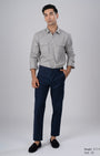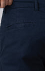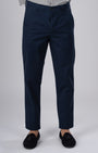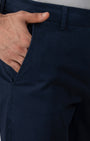 Tailored fit trousers in a comfortable high stretch and light medium weight cotton fabric with a classic waistband featuring front pockets, jetted back pockets, zip fly and button closure.