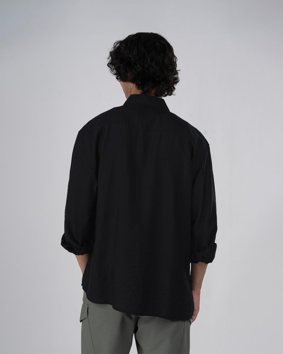 Soft Nylon Relaxed Over-Shirt In Black