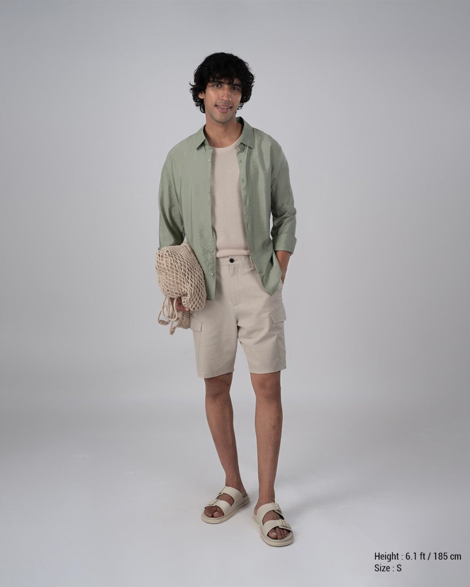 Relaxed fit shirt in a comfortable soft and light weight nylon-viscose blend fabric featuring long sleeves, buttoned cuffs and spread collar.