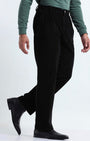 Relaxed fit pleated pants in a comfortable cotton corduroy fabric with a classic waistband featuring concealed drawstrings, front pockets, jetted back pockets, and zip fly.