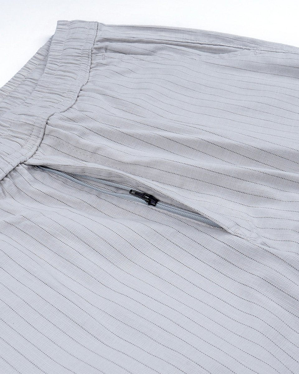 Relaxed Fit Trousers In A Comfortable Stretch And Light Weight Cotton Blend Fabric With A Classic Elasticated Waistband Featuring Front Pockets Patched Back Pockets and Zip Fly.