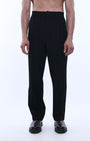 Relaxed fit trousers in a comfortable high stretch and light weight, polyester-viscose blend wrinkle-resistant fabric with a classic semi-elasticated waistband featuring front pockets, jetted back pockets, zip fly and pressure button closure.