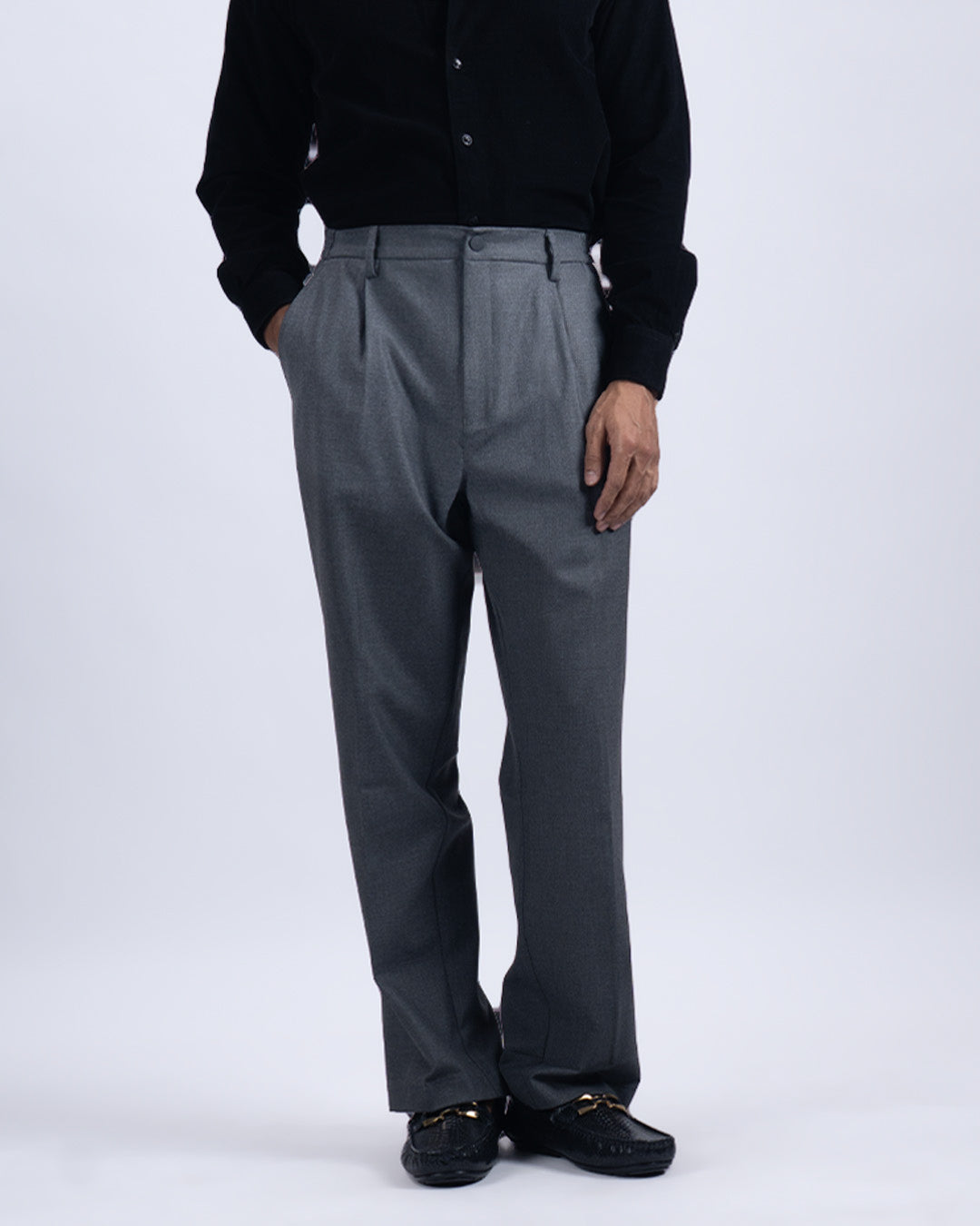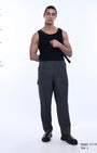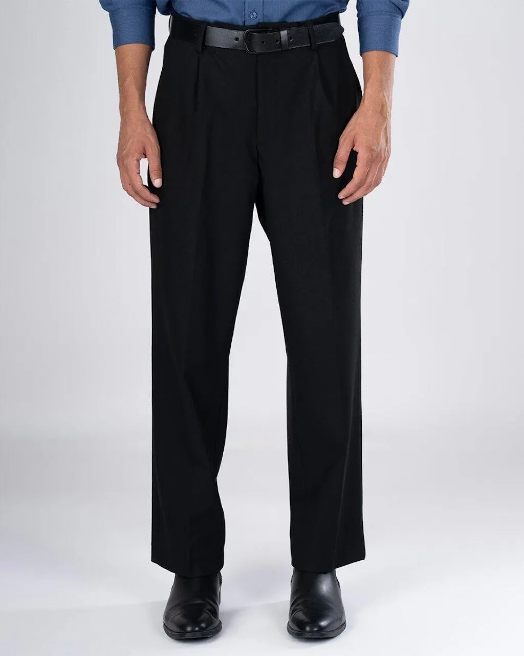 Relaxed fit trousers in a comfortable high stretch and light weight, polyester-viscose blend wrinkle-resistant fabric with a classic semi-elasticated waistband featuring front pockets, jetted back pockets, zip fly and pressure button closure.