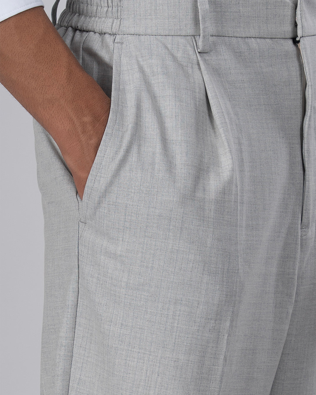 Soft Iron Flexi Pinstriped Relaxed Pants In Light Grey