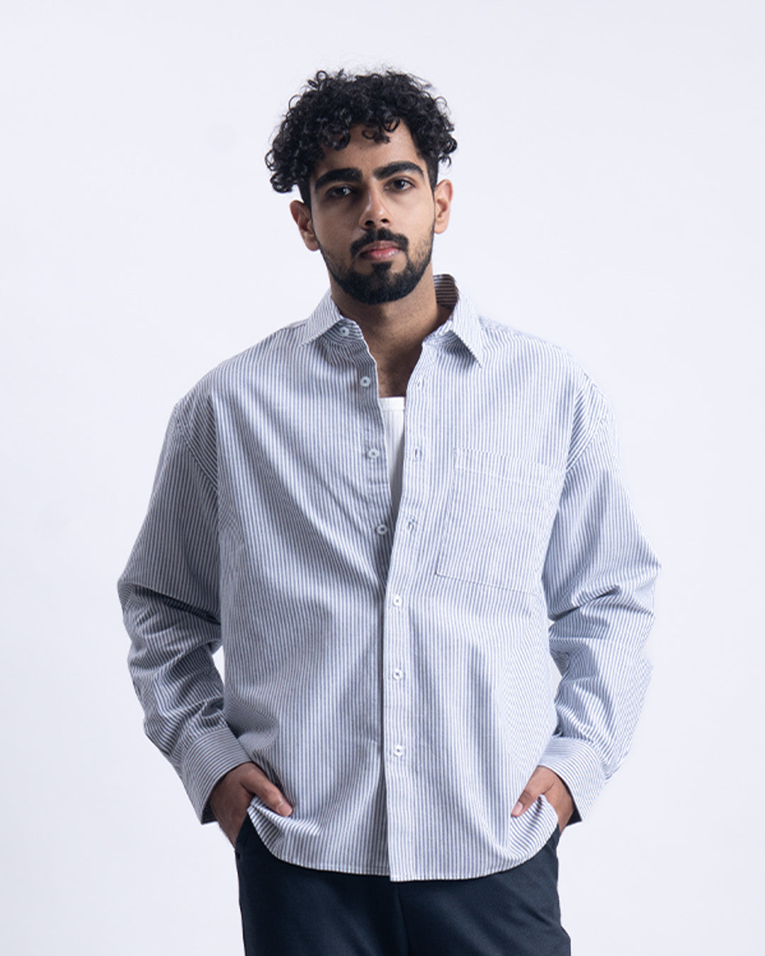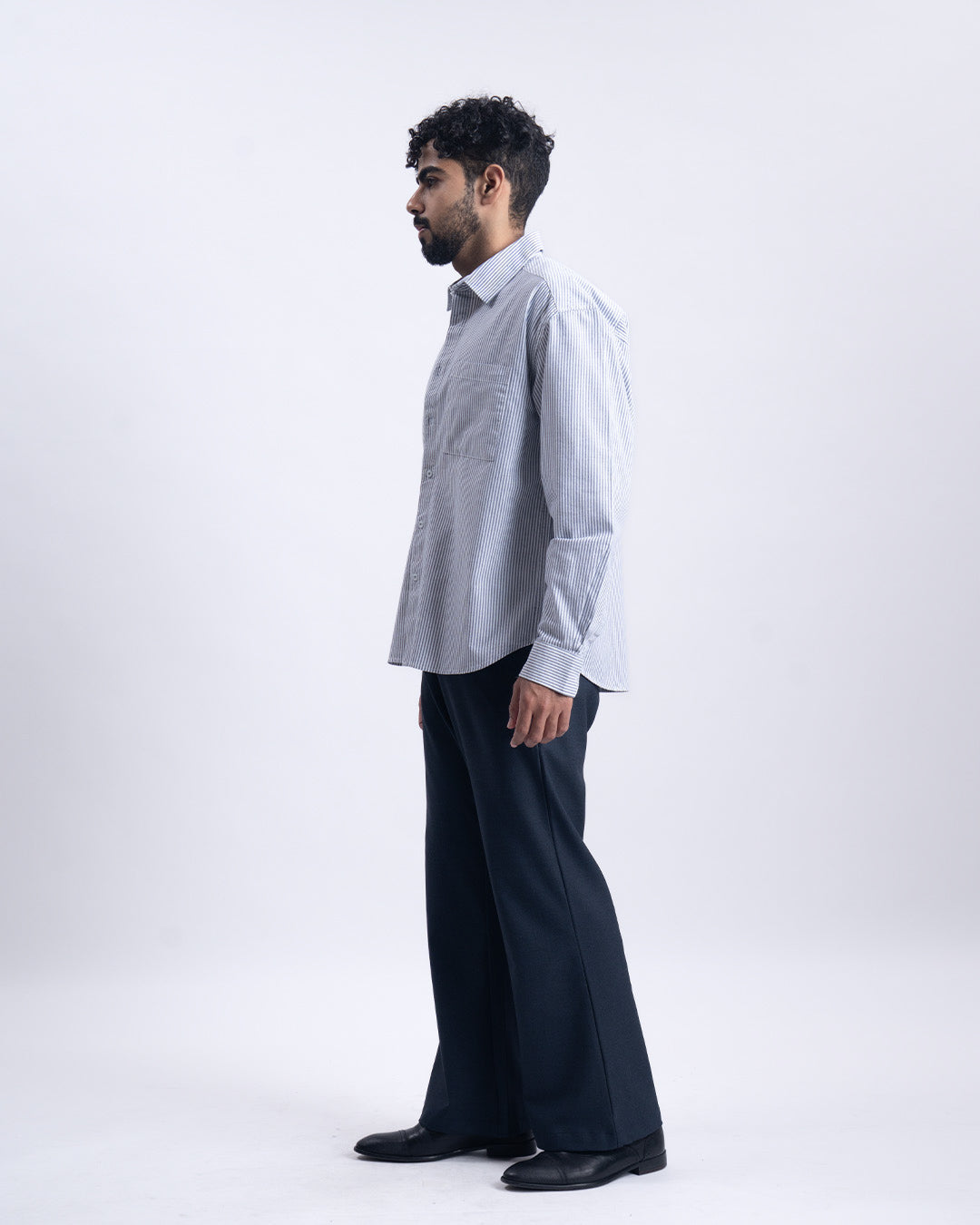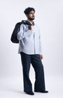 Relaxed fit cropped shirt in a comfortable cotton fine fabric featuring long sleeves, buttoned cuffs, patched pocket and spread collar.
