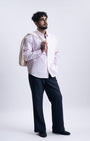 Relaxed fit cropped shirt in a comfortable cotton fine fabric featuring long sleeves, buttoned cuffs, patched pocket and spread collar.