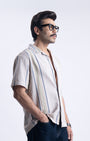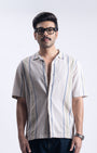 Striped Cuban Collar Shirt In Beige
