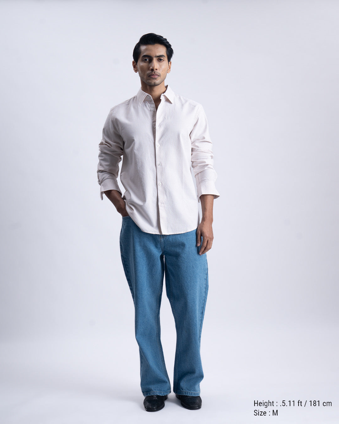Striped Cotton Tailored Shirt in Beige