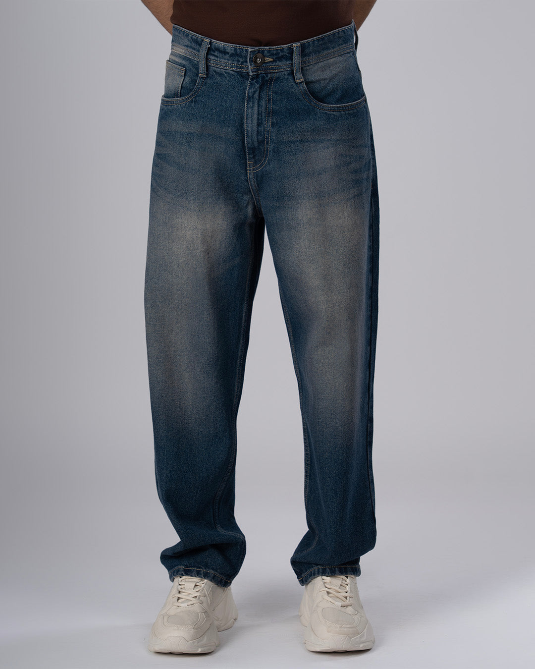 Relaxed fit denim in a comfortable 100% cotton light medium weight fabric with a classic waistband featuring front pockets, patched back pockets and zip fly.