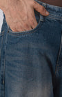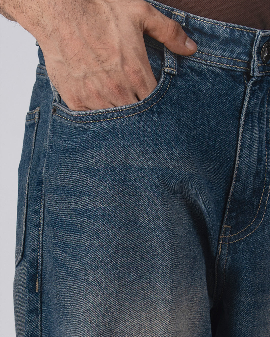 Relaxed fit denim in a comfortable 100% cotton medium weight fabric with a classic waistband featuring front pockets, patched back pockets and zip fly.