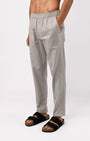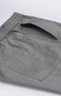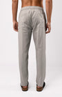 Tailored fit pants in a comfortable light weight linen cotton blend fabric with an elasticated waistband featuring front pockets, patched back pockets, and zip fly.