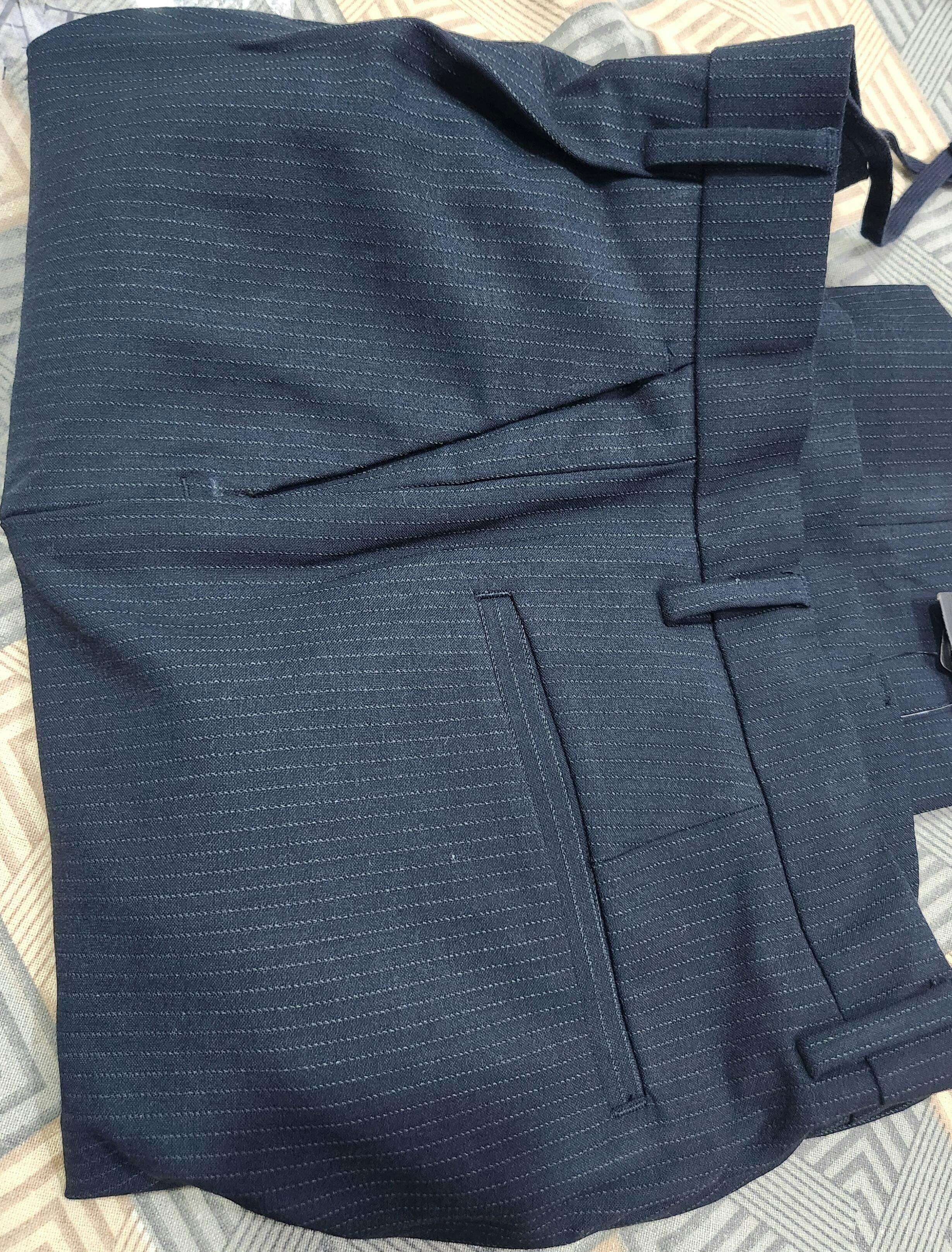Easy Iron Pinstriped Relaxed Trousers In Navy