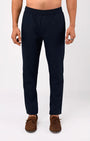 Tailored fit trousers in a comfortable high stretch and light medium weight polyester-viscose blend wrinkle-resistant fabric with a classic elasticated waistband featuring front pockets, patched back pockets and concealed drawstrings.