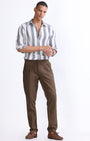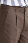 Tailored Fit Linen Feel Pleated Trousers in a Comfortable Cotton Fabric with a Classic Hidden Drawstring Adjustable Waistband Featuring Front Pockets, Jetted Back Pockets and Zip Fly for Better Comfort.