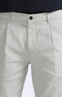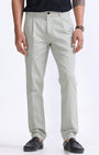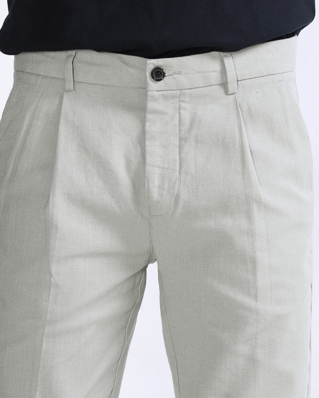 Tailored Fit Linen Feel Pleated Trousers in a Comfortable Cotton Fabric with a Classic Hidden Drawstring Adjustable Waistband Featuring Front Pockets, Jetted Back Pockets and Zip Fly for Better Comfort.