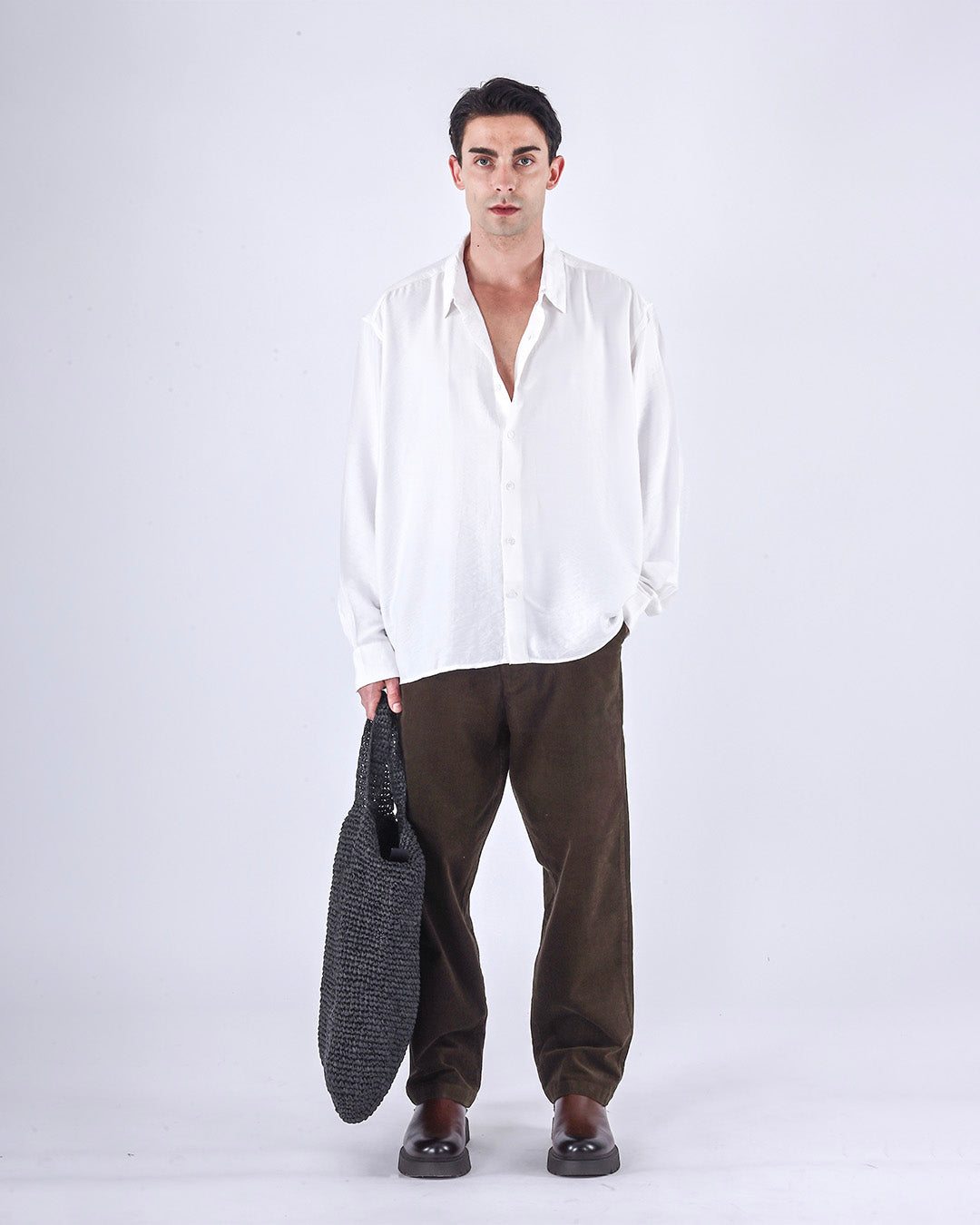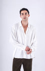 Relaxed fit shirt in a comfortable linen, polyester and viscose blend fabric featuring long sleeves, buttoned cuffs and spread collar.