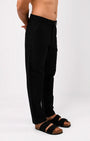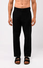 Relaxed fit pants in a comfortable soft cotton modal medium stretch fabric with a classic waistband featuring concealed drawstrings for better waist movement , front pockets, jetted back pockets and zip fly.