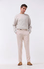 Tailored Fit Trousers In A Comfortable Mechanical Stretch Fabric Of Cotton and Polyester Blend With A Classic Waistband Featuring Front Pockets, Rear Welt Pockets, Front Creases and French Zip Fly For Better Comfort.