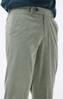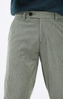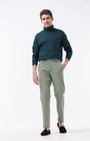 Tailored Fit Trousers In A Comfortable Mechanical Stretch Fabric Of Cotton and Polyester Blend With A Classic Waistband Featuring Front Pockets, Rear Welt Pockets, Front Creases and French Zip Fly For Better Comfort.