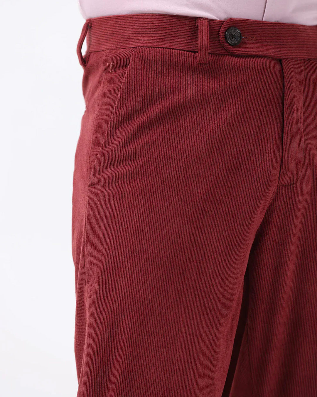 Tailored Fit Trousers In A Comfortable Mechanical Stretch Fabric Of Cotton and Polyester Blend With A Classic Waistband Featuring Front Pockets, Rear Welt Pockets, Front Creases and French Zip Fly For Better Comfort.