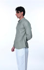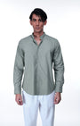 Easy Iron Textured Mandarin Shirt In Green
