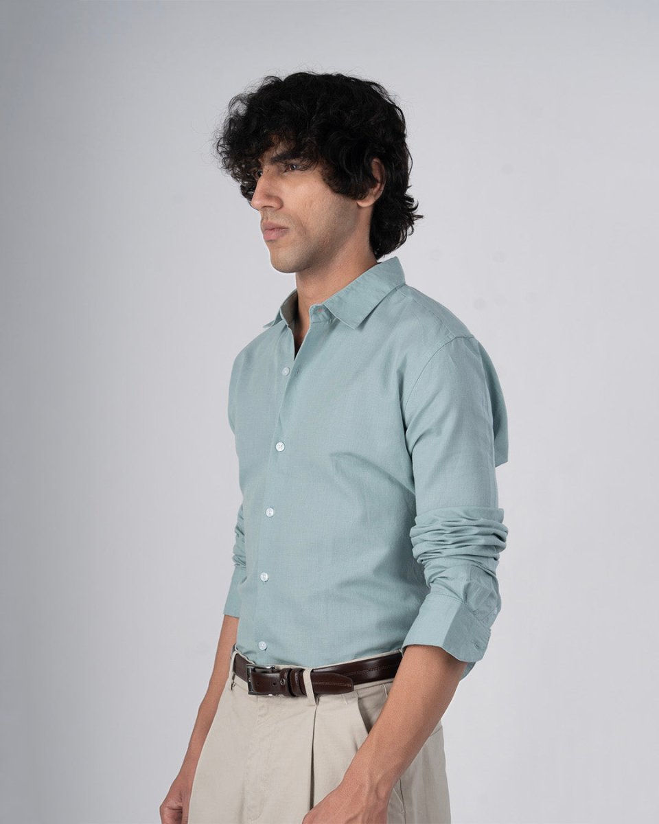Classic Fused Linen Shirt In Green
