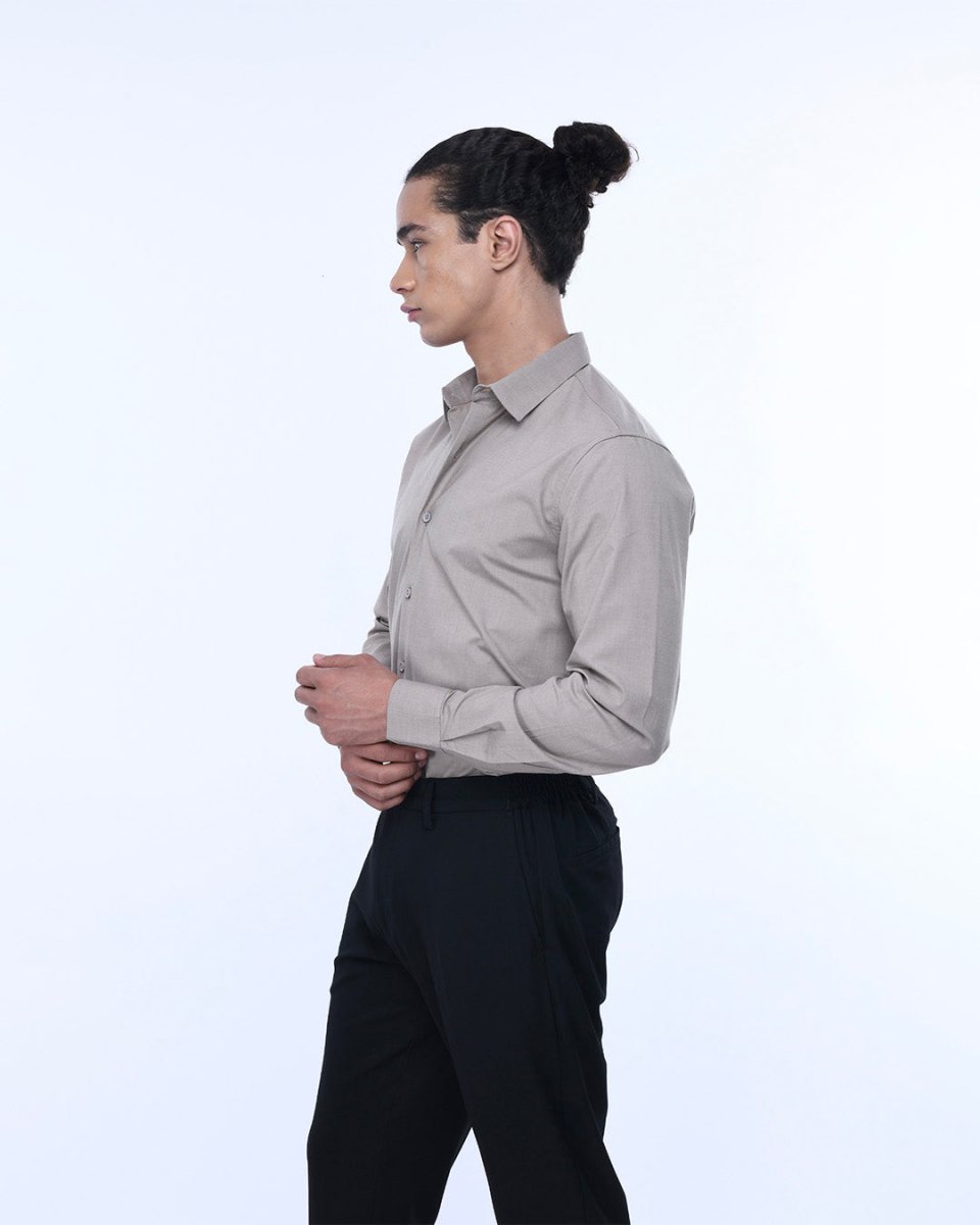Easy Iron Office Stretch Shirt In Beige