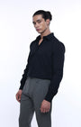 Tailored-fit shirt in a comfortable polyester and viscose blend with a high stretch wrinkle-resistant fabric featuring long sleeves, buttoned cuffs, and a spread collar.